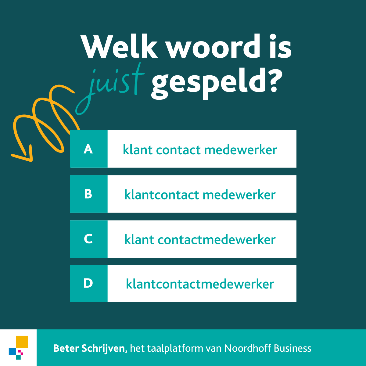 Noordhoff Business stimuleert nieuwsgierige professionals om elke dag beter te worden dan gisteren. Wij bieden een interessante collectie boektitels voor professionals, die aansluit bij maatschappelijke ontwikkelingen. Daarnaast bieden wij specifiek voor medewerkers in een klantcontactberoep een online platform voor het verbeteren van taalvaardigheden: Beter Schrijven.